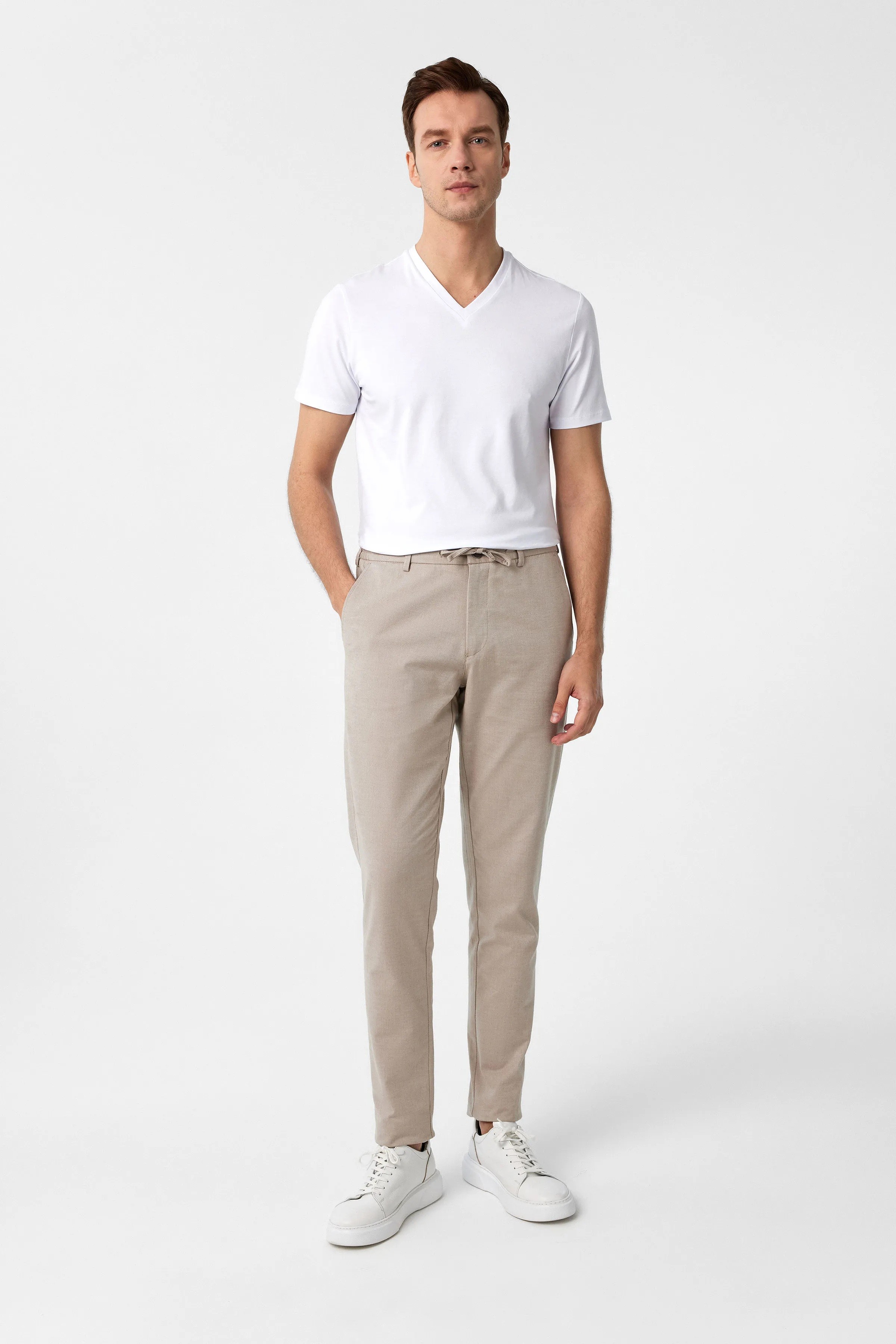 Süvari Dar Kesim Armür Desenli Premium Ceaser Keten Pantolon
